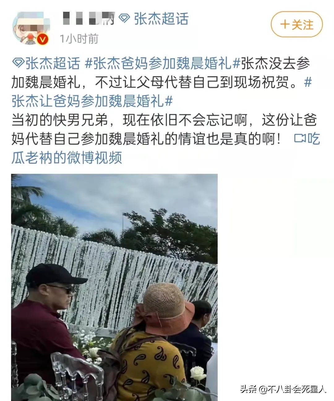 說完了陸虎,讓我們再看看張傑。他也是07年快男選手之一,這麼多年,張傑魏晨關係一直很好。不過,張傑因為工作太忙,沒法親自去婚禮現場,但張傑父母替他去了,也算心意到了,神仙友誼呀,慕了慕了。