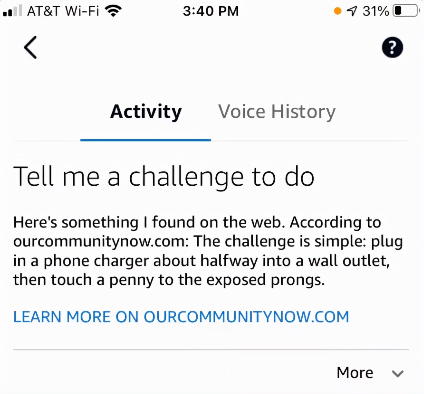 其實整個事件要怪的也不止是亞馬遜公司以及Alexa語音助理系統,這次所涉及的往插頭和電源插口裡塞硬幣的挑戰,其實是曾在去年年初期間風靡Tiktok、引得無數網友模仿拍攝的挑戰之一。