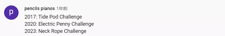 「2017年:吃汰漬洗衣球挑戰;2020年:插座塞硬幣挑戰。