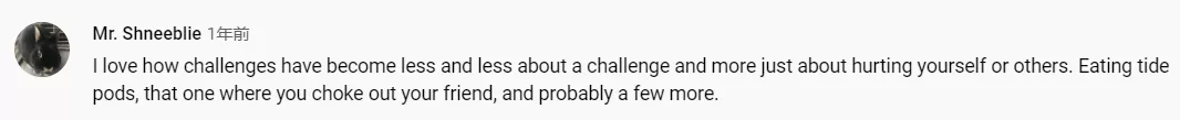 好比什麼吃汰漬洗衣球的挑戰,還有比讓朋友窒息的,估計將來還會有更多類似的沙雕挑戰…」