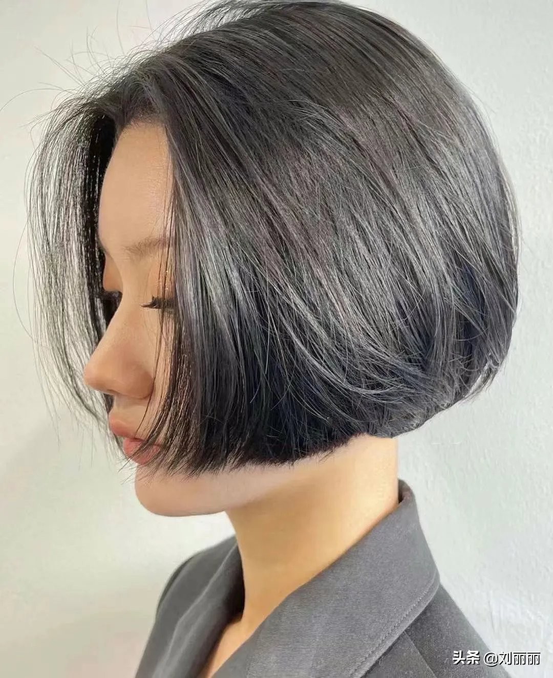 齊嘴的波波頭髮型配上灰色的染髮,有質感還時髦,這種髮型十分的有型,垂落下來,飽滿又遮臉,當你甩動頭髮的時候,還特別的有動感。