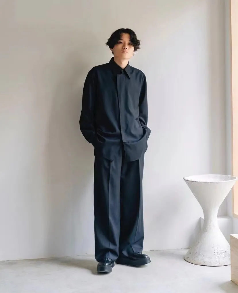 高島涼會經常上身一個日本新晉的小眾品牌 irenisa 的襯衫,這個品牌的 LookBook 都是上下同色的穿搭做文章,多以深棕色、黑色這種不易出錯、又凸顯高級感的顏色為主。