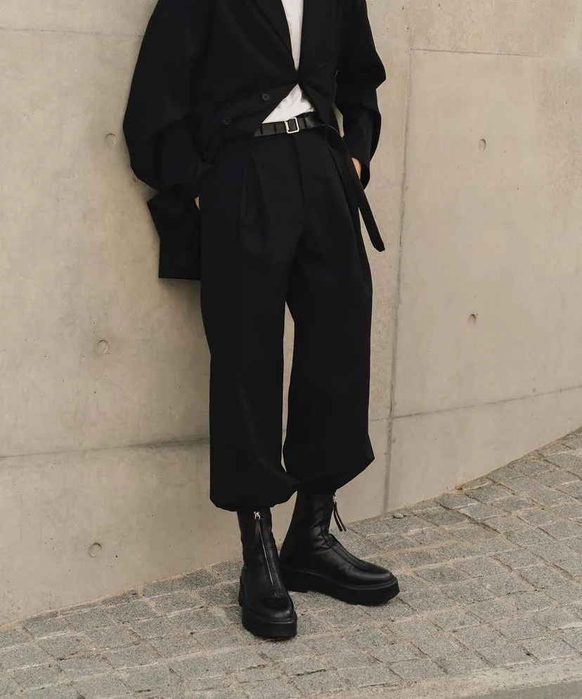 把長褲塞進靴子裡,不但能拉長腿部的比例,還能有瘦小腿的效果,絕對是個凸顯品味的絕佳單品。