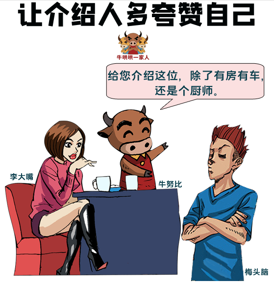 相親都是以結婚為目的,需要直截了當地用自己的優點吸引對方,但自吹自擂略顯做作,最好的辦法是尋求介紹人的幫助,讓她把你誇上天,例如,你有房有車無貸款,收入穩定有前途,父母退休素質高,老師本分性格好……,讓女生對你的心動值biubiu上漲。