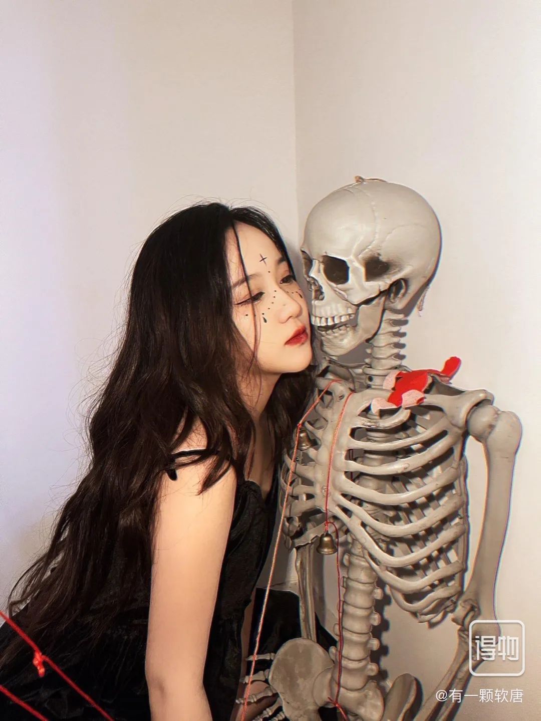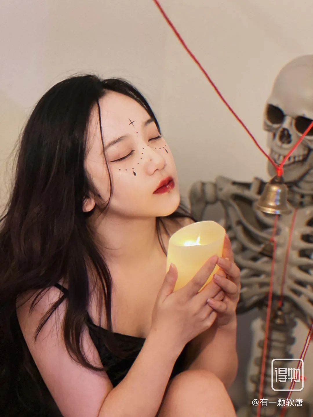 店裡一角打卡:骷髏、 剪紙人、紅繩、黑貓、鈴鐺……
