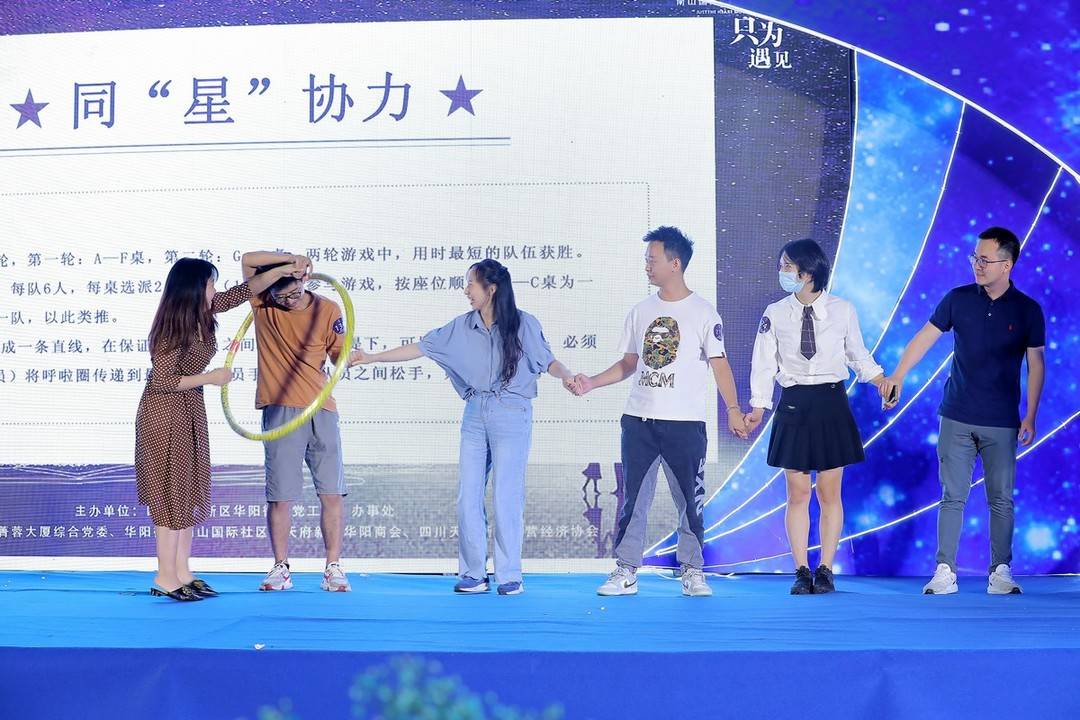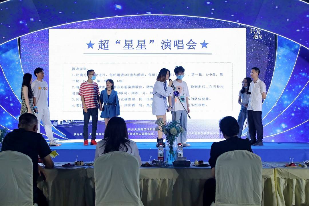 9月29日晚,在四川天府新區華陽街道南山國際社區菁蓉大廈廣場舉辦了一場「心隨星動 只為遇見」單身交友活動,300餘名各行各業的青年以活動為媒,展現自我,結交朋友,拓展交際圈。