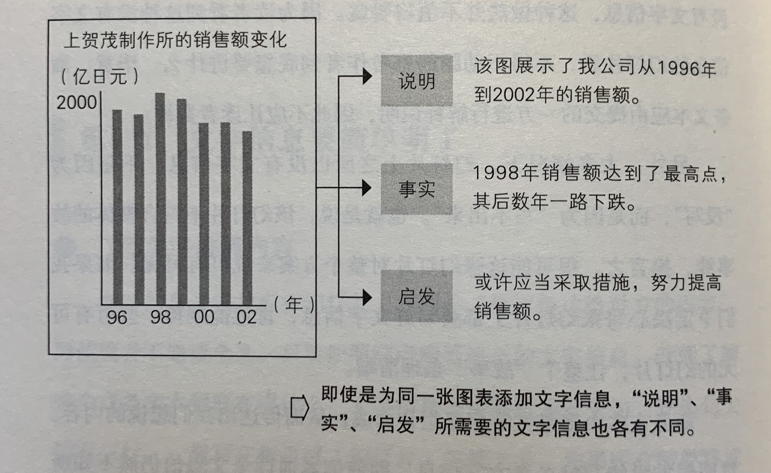 文字制成圖表,即將文字資訊化為圖表:統計圖、圖形、插圖、照片等,幫助對方正確理解要意。