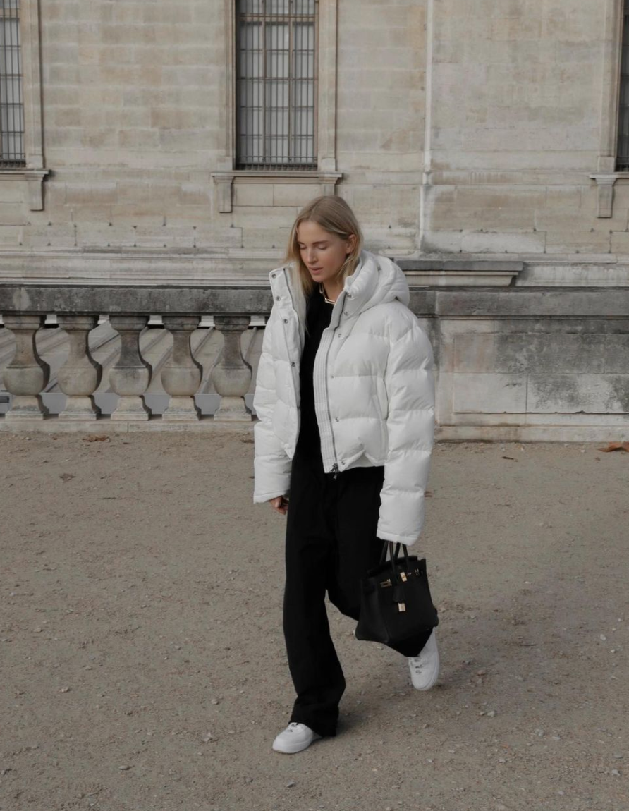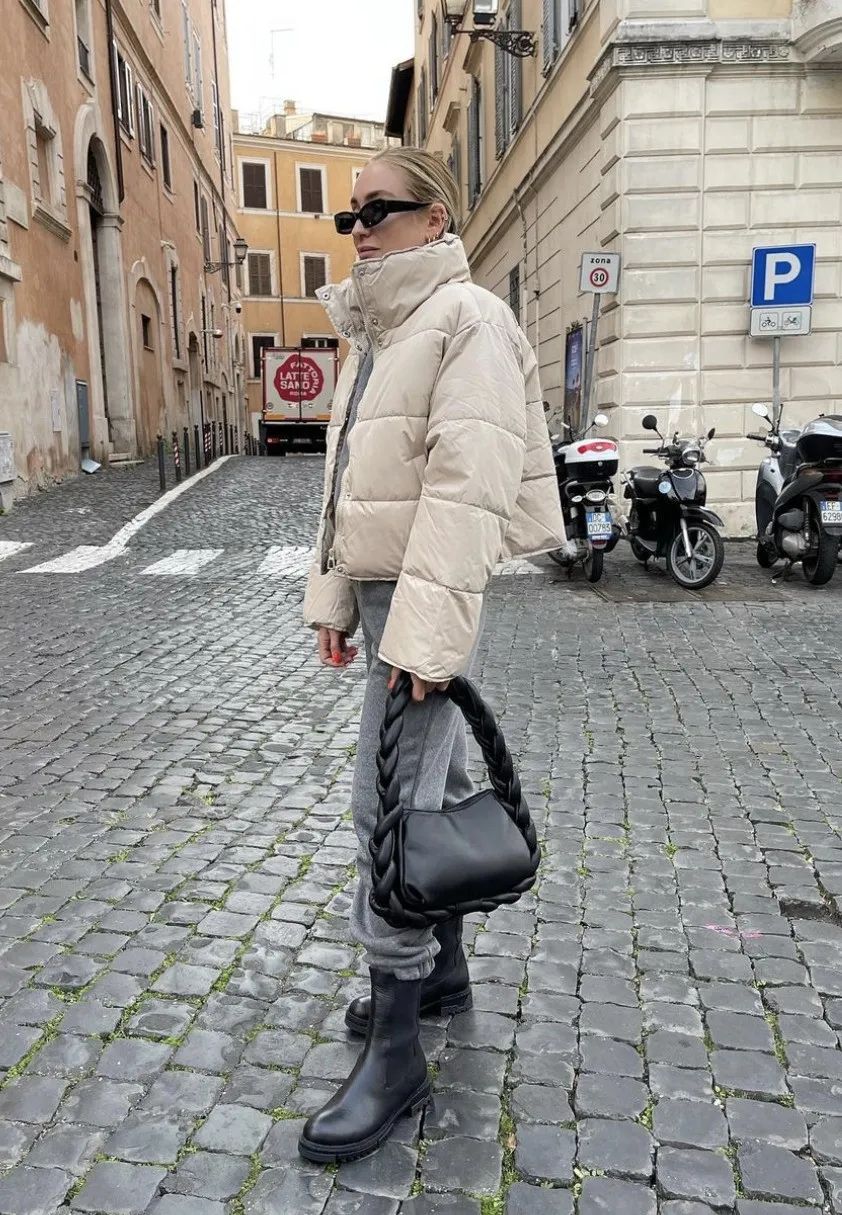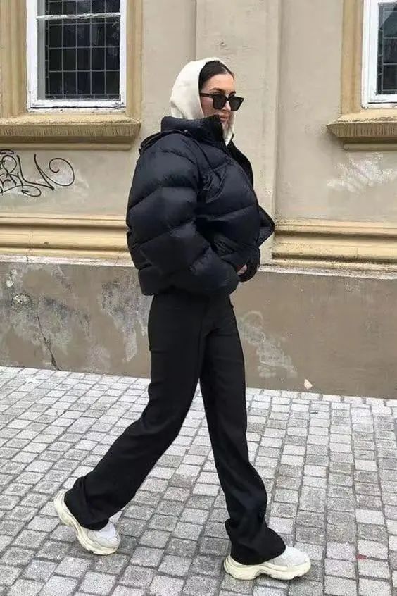 搭配短款羽絨服的下裝有很多,但如果你現在刷任何ins的穿搭,幾乎滿眼都是闊腿褲……