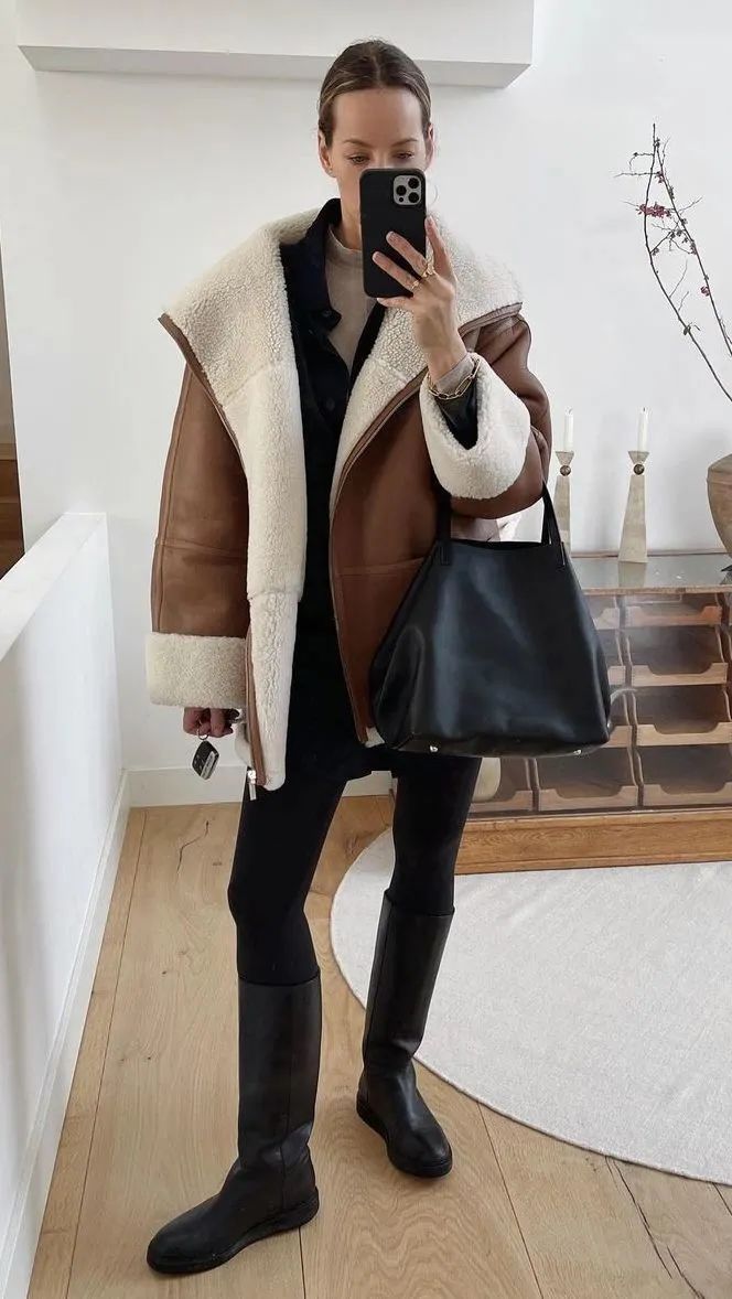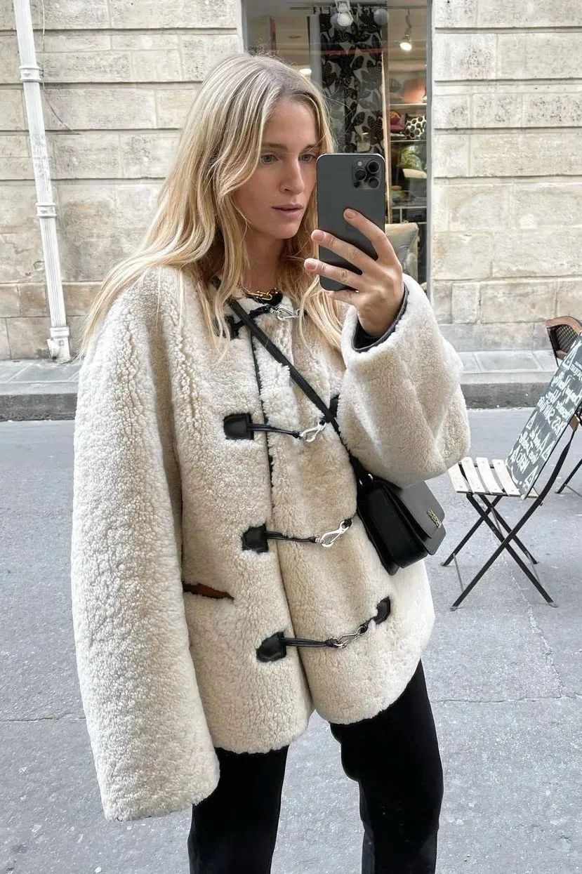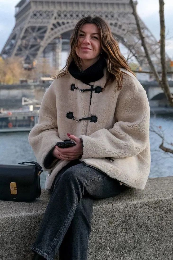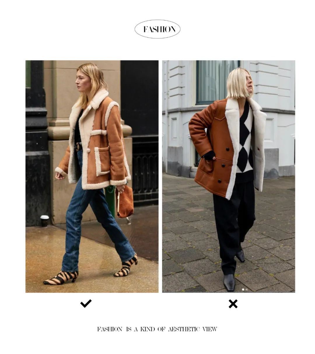真的遇上了大降溫,還可以把長款的毛呢外套換成更厚實的羊羔毛外套,這個組合即使在北方也能抗住寒風,保暖性完全不耽誤~