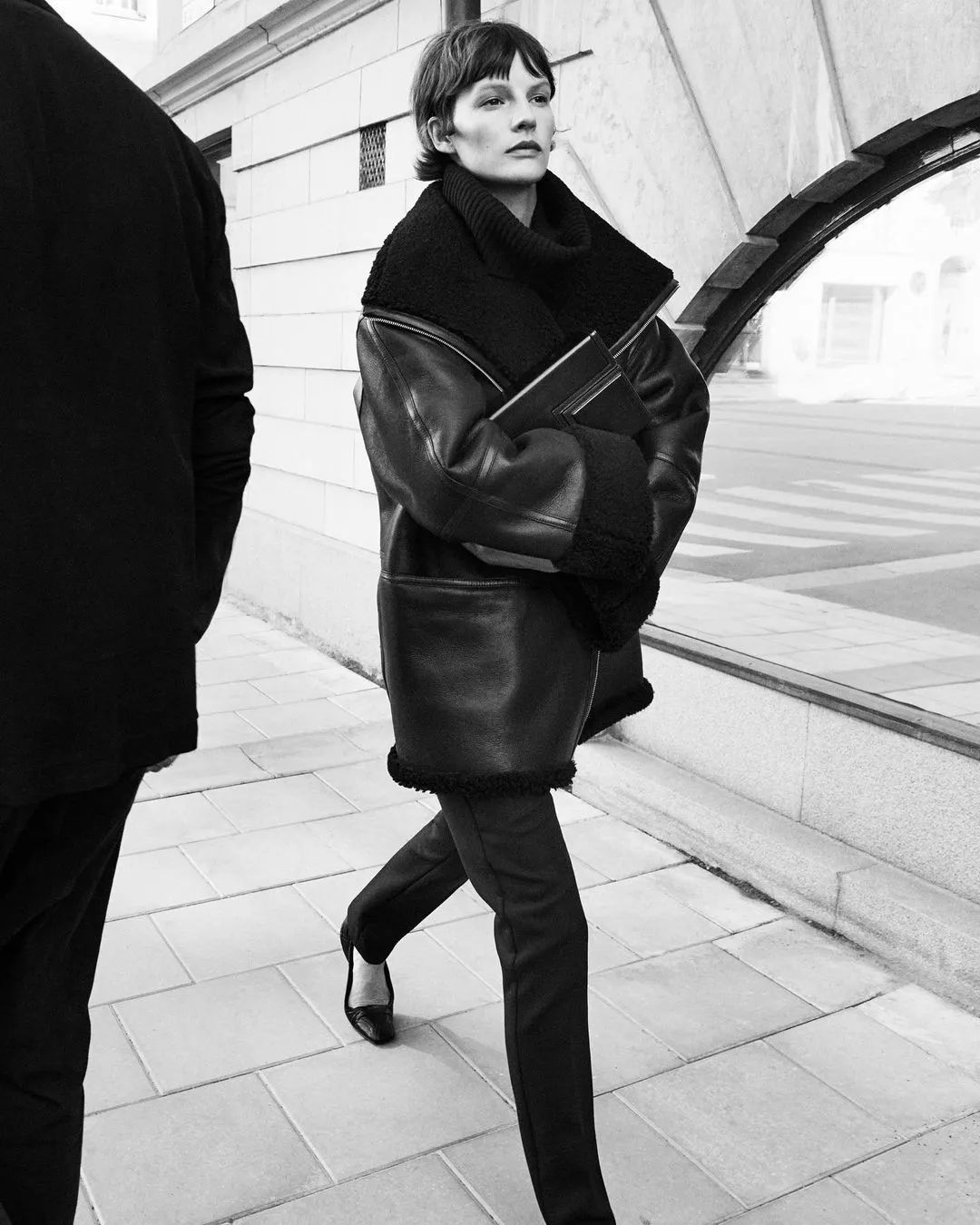Totême這件毛絨外套今年就好火,穿它的博主大多都是搭配一條簡單利落的牛仔褲就輕鬆出門,還是上松下緊的搭配思路保持利落風格。
