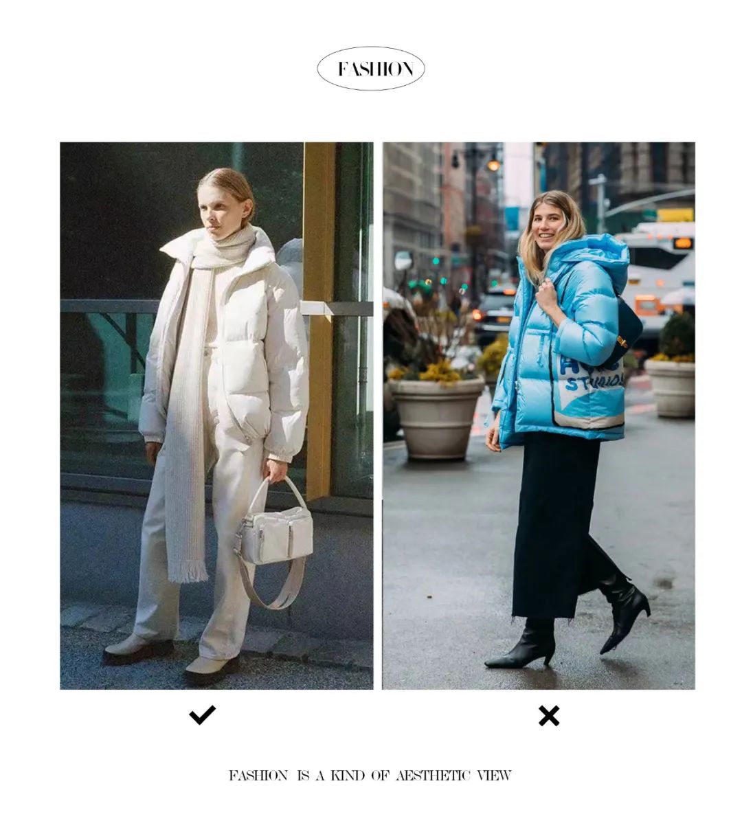 看到這裡或者有人就說了:羽絨服本來就臃腫,再搭配寬鬆的闊腿褲不是更顯胖嗎?上寬下寬的組合,確實會有一定的顯胖風險,所以闊腿褲的板型也不能過於寬鬆。