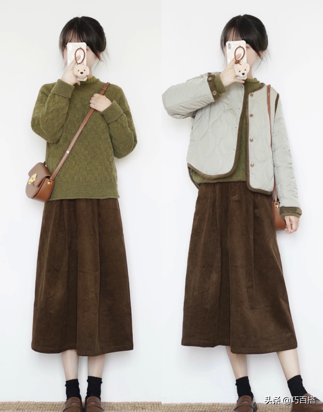 綠色系的百搭效果也是超乎想像,我們日常搭配中所熟悉的大地色,與綠色系搭配毫無違和感,復古綠色顯得整個搭配愈發出挑。