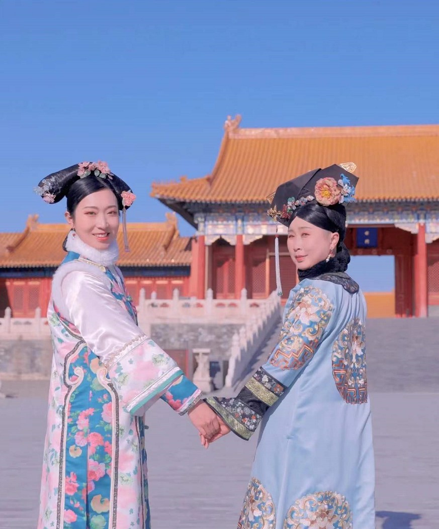 前段時間希希帶媽媽去北京看病其間去了趟天安門和故宮倆人還一起拍了古裝創意照「她生病後比較沉默戴上假髮、穿上古裝的媽媽露出了久違的笑容,我很開心也圓了她的古裝夢」