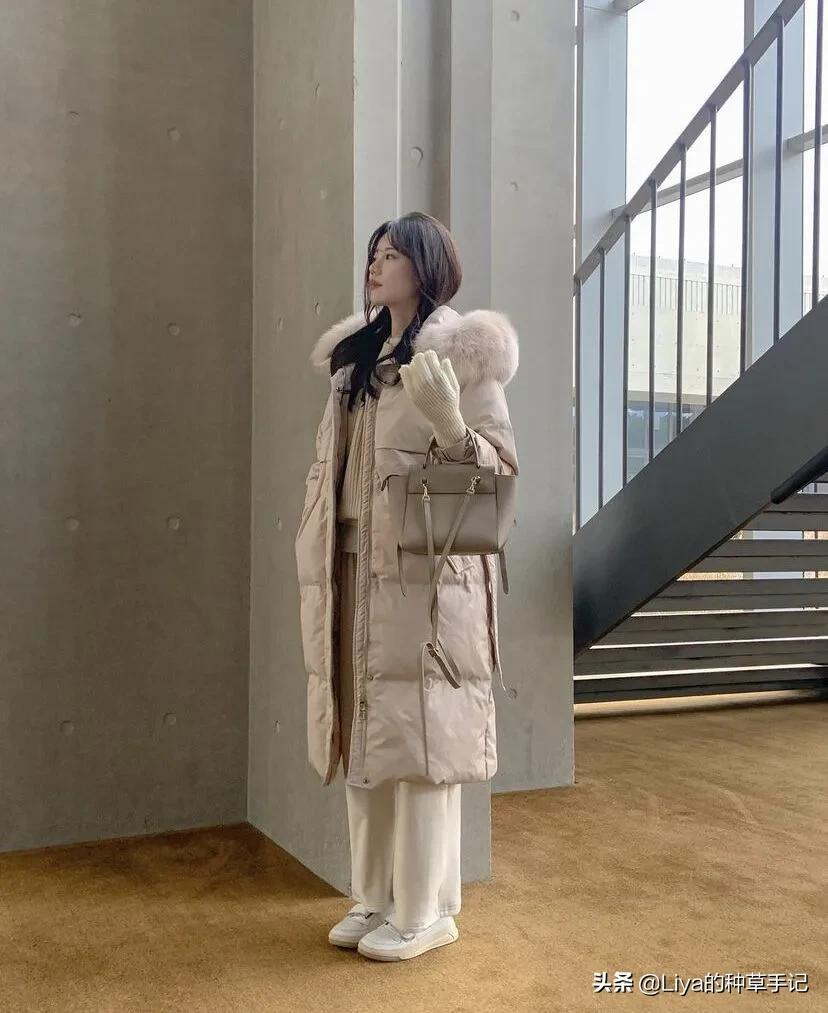 看膩了黑白灰的羽絨服,薄荷色來了解一下。低飽和的色系不挑膚色,再加上毛毛領的襯托下,整個人顯得又嫩又可愛。