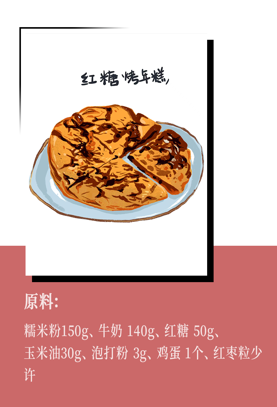 3. 6寸模具中鋪好油紙,將混合物倒入一半在模具中,撒上紅糖和紅棗粒,倒入剩下的混合物;