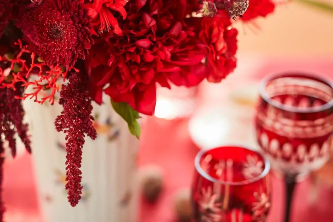餐桌上搭配的桌旗、餐墊、鮮花等裝飾元素,則能夠以對比色或互補色的形式作為點綴,讓節日餐桌的色彩先豐富視覺感受。