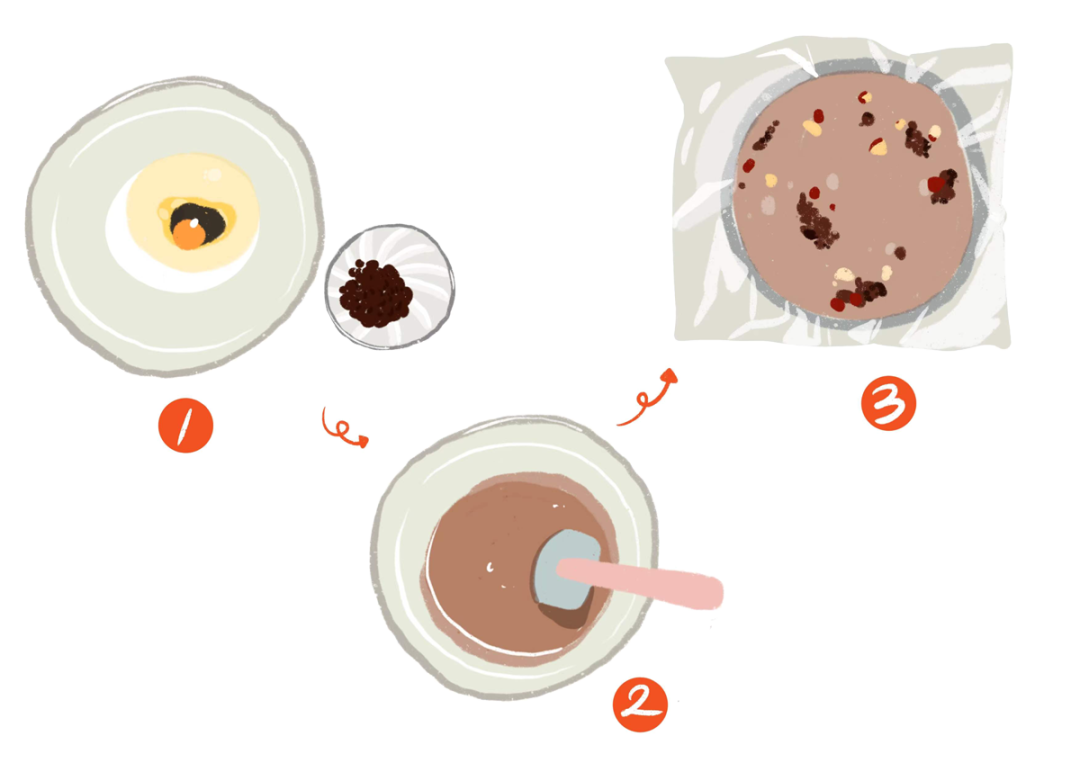 1. 碗中加入牛奶、玉米油、紅糖、雞蛋,攪拌均勻;