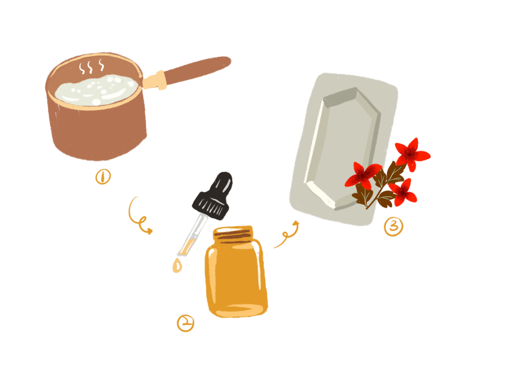 2. 冷卻至 60° 時加入香氛精油與染料;