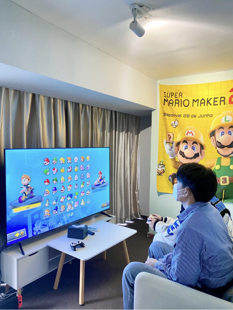 ps5手柄,switch,一櫃子遊戲卡!65寸超大屏顯示!4K高清!喜歡打遊戲的情侶在這裡簡直不要太過癮!只想一整天窩在這!