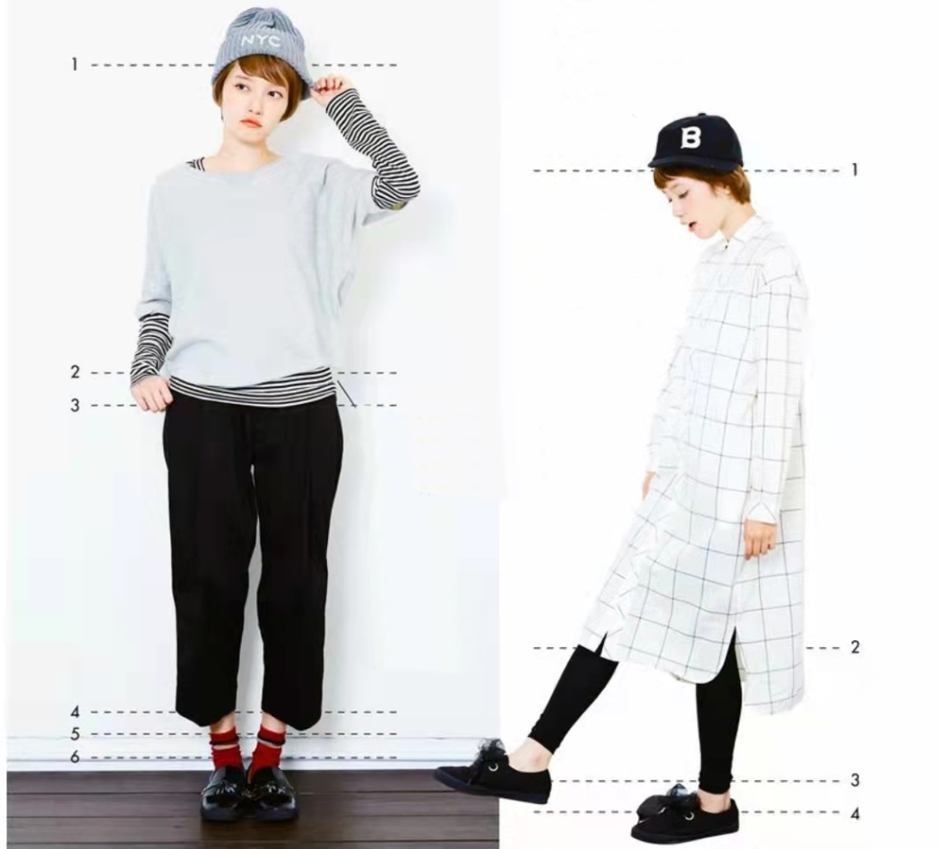 小個子需要足夠高的亮點,才能彌補身材缺憾。一切的焦點上移法,出現的位置越高、越顯高。例如,彩色/個性帽子、肩膀鮮艷疊穿、短外套,全是顯高招術。