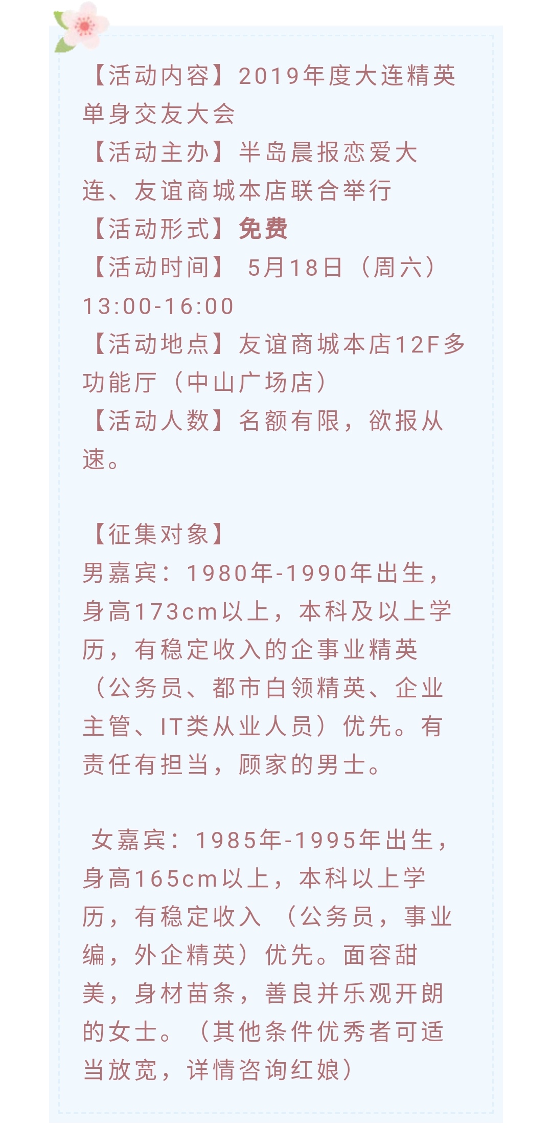 免費交友活動報名丨向全城單身精英人士發出邀請!