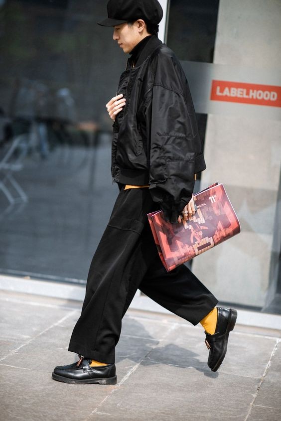 在日常生活裡,如果你選擇了同色系搭配,就可以利用一個撞色的小配飾、小裝飾,小小增添視覺沖擊力,讓造型變得更加具有變化感。即便是純黑色的穿搭,你也可以踐行這一搭配規則,在襪子之處下功夫,配合一雙暖色調襪子,構成整體的色調對比,輕鬆起到畫龍點睛的作用。