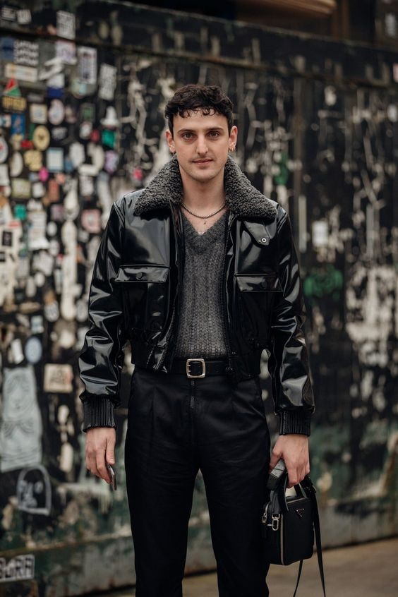 當然,在選擇上衣搭配時,你也不要忽略了疊穿這一重要的搭配方式。將黑色單品進行疊穿,通過不同的材質、亮度來呈現出層次感,也能夠讓造型告別沉悶,呈現出出彩的效果。針織元素作為內搭,疊穿漆皮外套就讓造型看起來相當與眾不同。