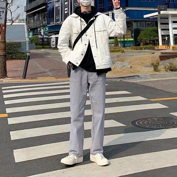 利用色系來打造乾淨、簡約的穿搭,少年感十足的白色牛仔外套,加上黑色衛衣單品組合,兩種經典顏色碰撞,加上褲裝的淺灰直筒褲,很好平衡了整體視覺中心。