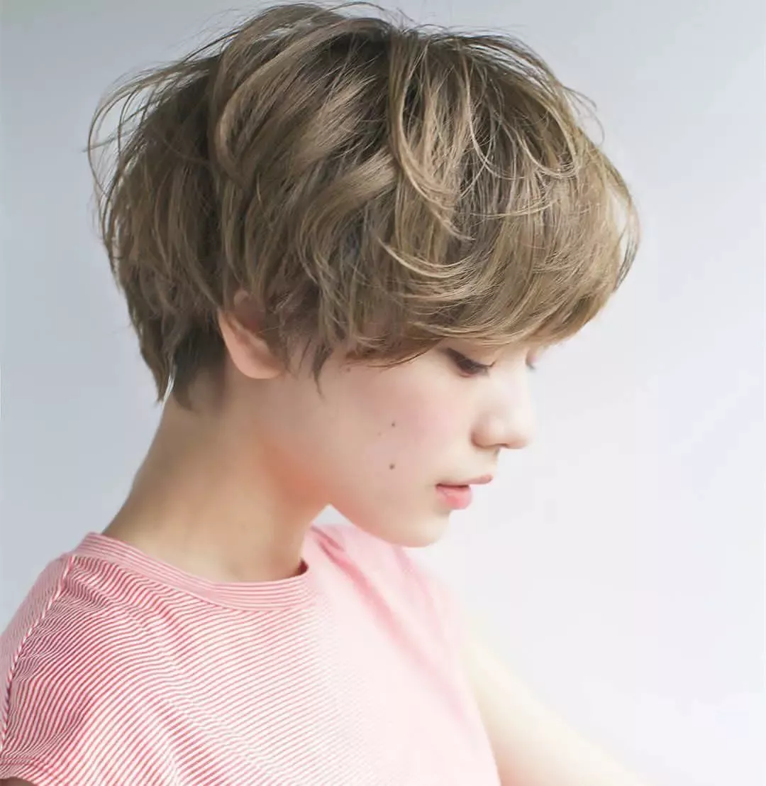 整體短髮上只需要稍微營造出空氣感,就能起到減齡的作用,在發色上可以大膽嘗試適合淺發色。關鍵要富有層次感,未經燙髮的自然狀態下也會有略微的弧度,親和力滿分。