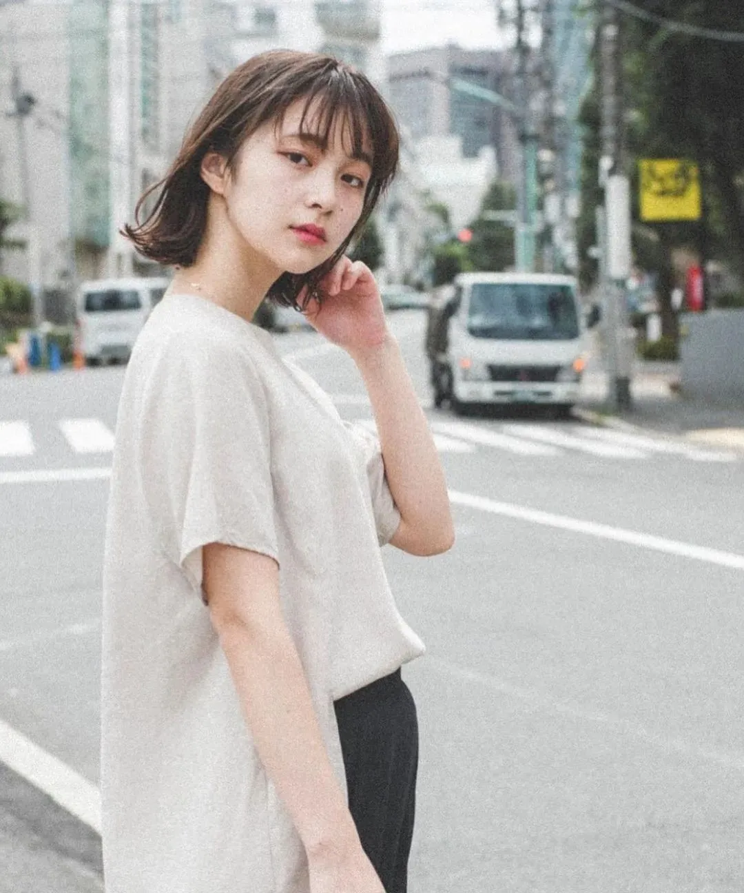 這類女生想嘗試短髮的話,建議長度在下巴以下、鎖骨以上的位置,適合層次紋理感鮮明的短髮,可以為整體面容增加清晰的線條感。瀏海部分要有透氣感,留一些細小的縫隙視覺上拉長臉型。
