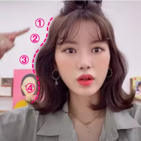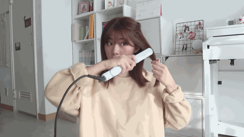 這個髮型適合用直板夾來做,可以把頭髮從內到外分成3層。最後夾成內扣就好,只需要卷1次: