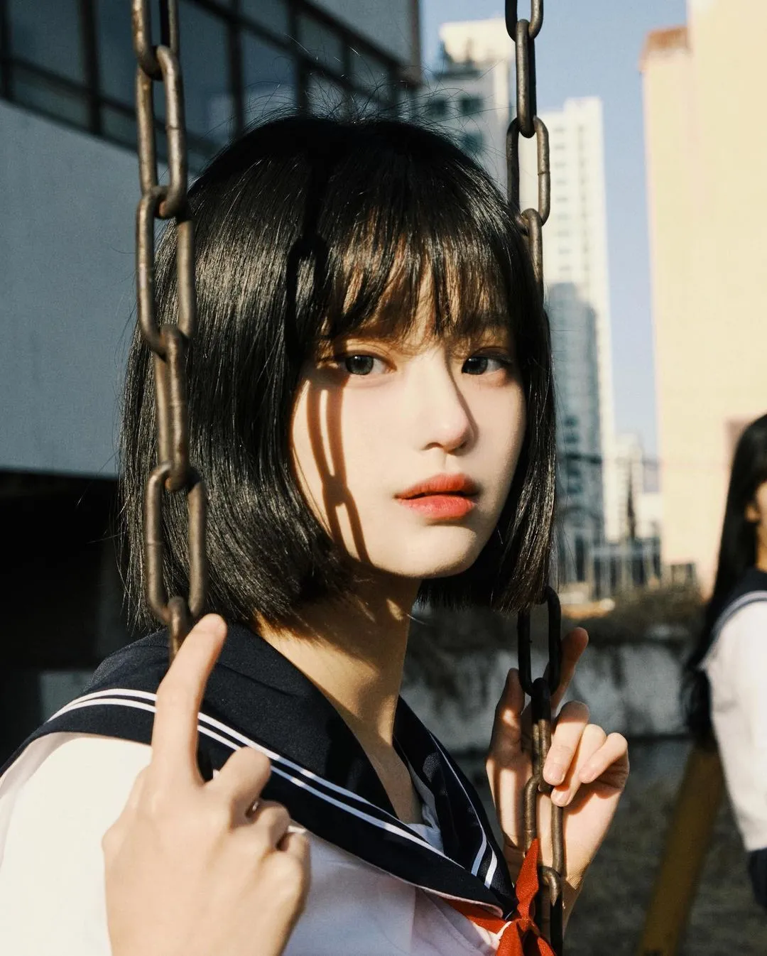 髮尾微微內扣的短髮搭配超減齡的空氣瀏海,這款初戀頭可以讓你留住青春。
