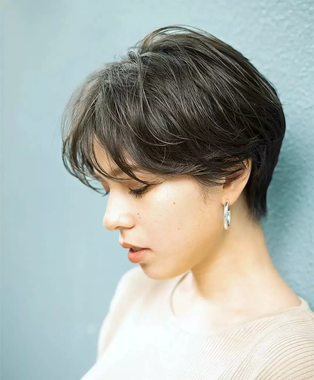 方下巴類型的女生,如果下顎偏大適合選擇稍微能遮蓋兩頰的髮型,或是搭配微捲髮盡量柔化自己的面部線條感。而發頂蓬松層次錯落的耳上超短髮,更是下顎偏小的。