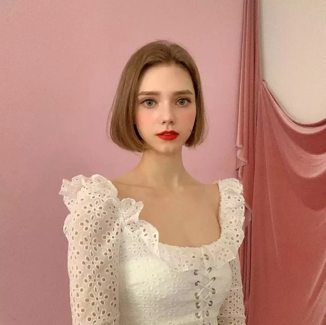短下巴可以嘗試打造可愛bob頭,剪至下巴處長度的短髮,配上有弧度的微卷,再剪個齊瀏海,這種短髮的特點是髮尾較齊,兩側的頭髮修剪層次瘦臉效果很不錯,特別顯高級。