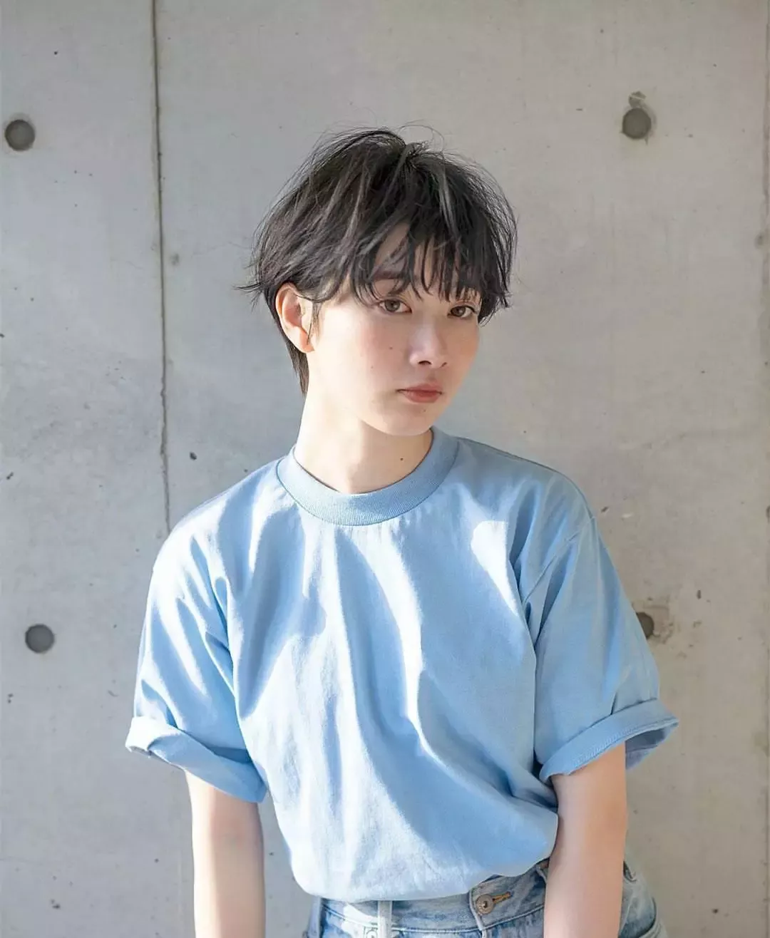 方形下巴也很容易顯臉短,非常適合日系這種個性鮮明的凌亂瀏海,能起到不錯的修飾作用。