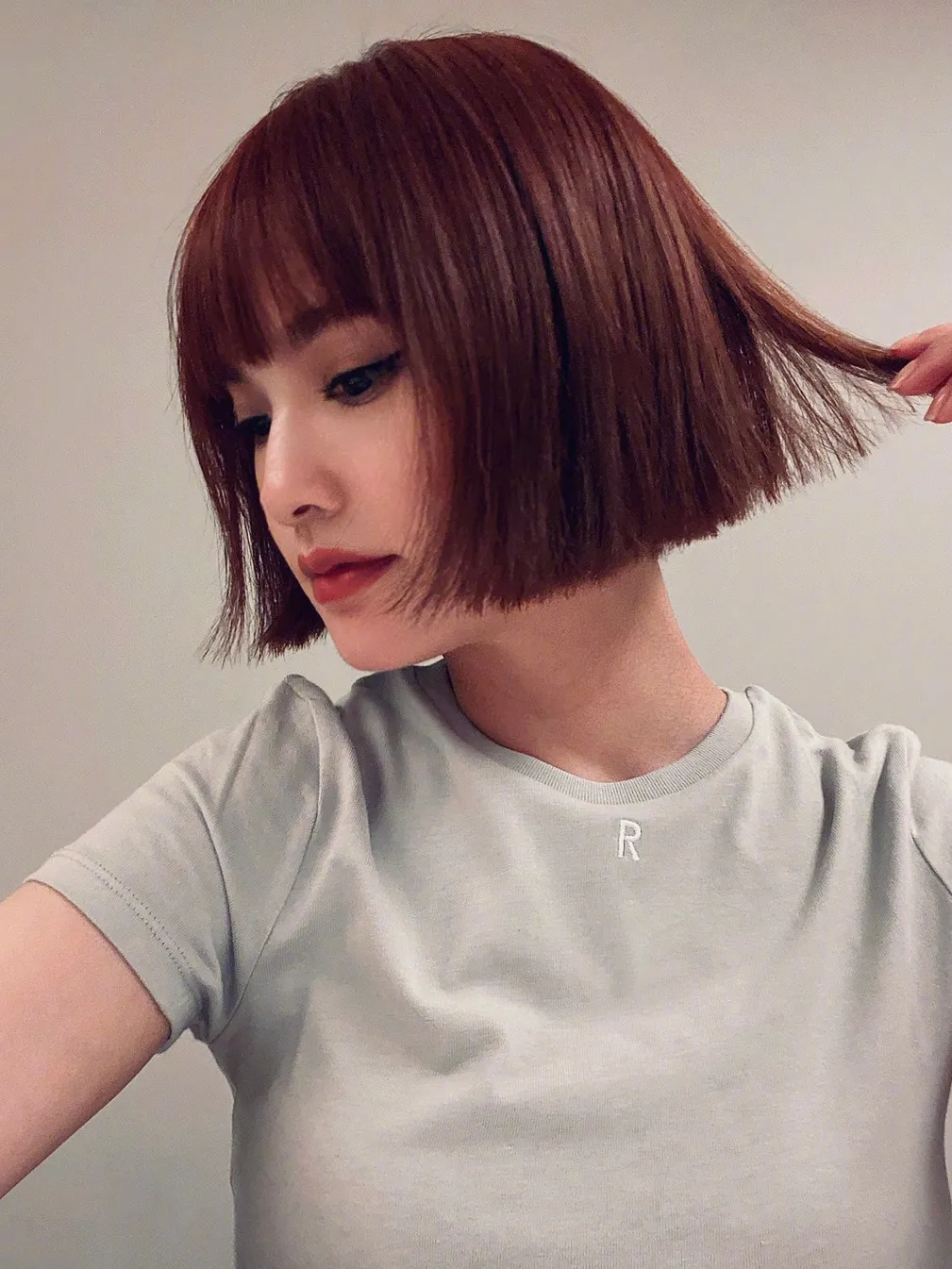 選擇齊耳短髮最好搭配瀏海,可以選擇薄一些的瀏海修飾額頭,兩邊可以稍長修飾顴骨,從而看起來不厚重更俏皮。