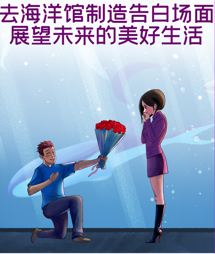 電影中有很多人在海洋館跟戀人表白,你也可以將他拉到這裡,面對象徵著愛情的海豚,對你的他說一些清華,或者撒嬌般地挽起他的脖子,表達自己未來想跟他好好在一起的決心。