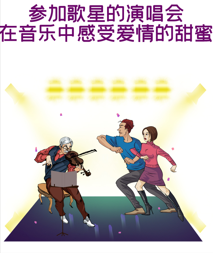 演唱會上會有很多觀眾,大家可能一起拿著熒光棒歡呼,你可以挽著他的胳膊和大家一起呼喊,融入這歡樂的氣氛中,可能平時生活裡瑣事引起的不愉快會轉瞬即逝。