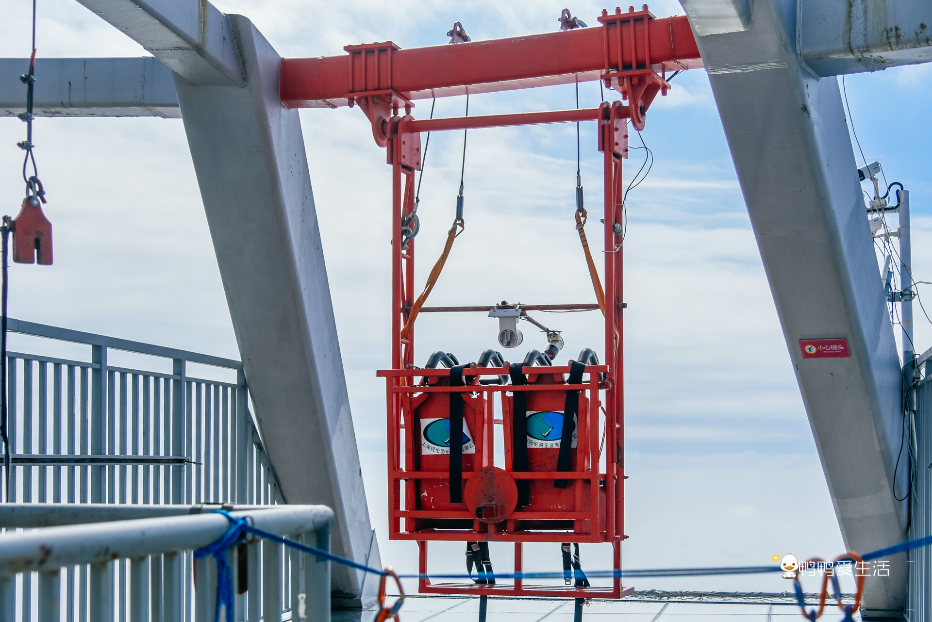 飛越天際項目其實是個海景秋千,位於雙子塔最高點,設計採用雙人座位,設備垂直高度2.4M,搖擺高度最高能達到距離地面近80°,紅色的座椅活潑出挑,美貌和實力並存。為了增加現場體驗的刺激感和視覺沖擊力,地面採用全透明玻璃打造,讓你低頭就能俯瞰愛情天臺與絕美海景。在300M的高空泛動,無敵美景盡收眼底,海風微撫,在廈門的至高點,鷺島最佳的觀景角度,懷抱美景,有種「王者歸來」既視感。