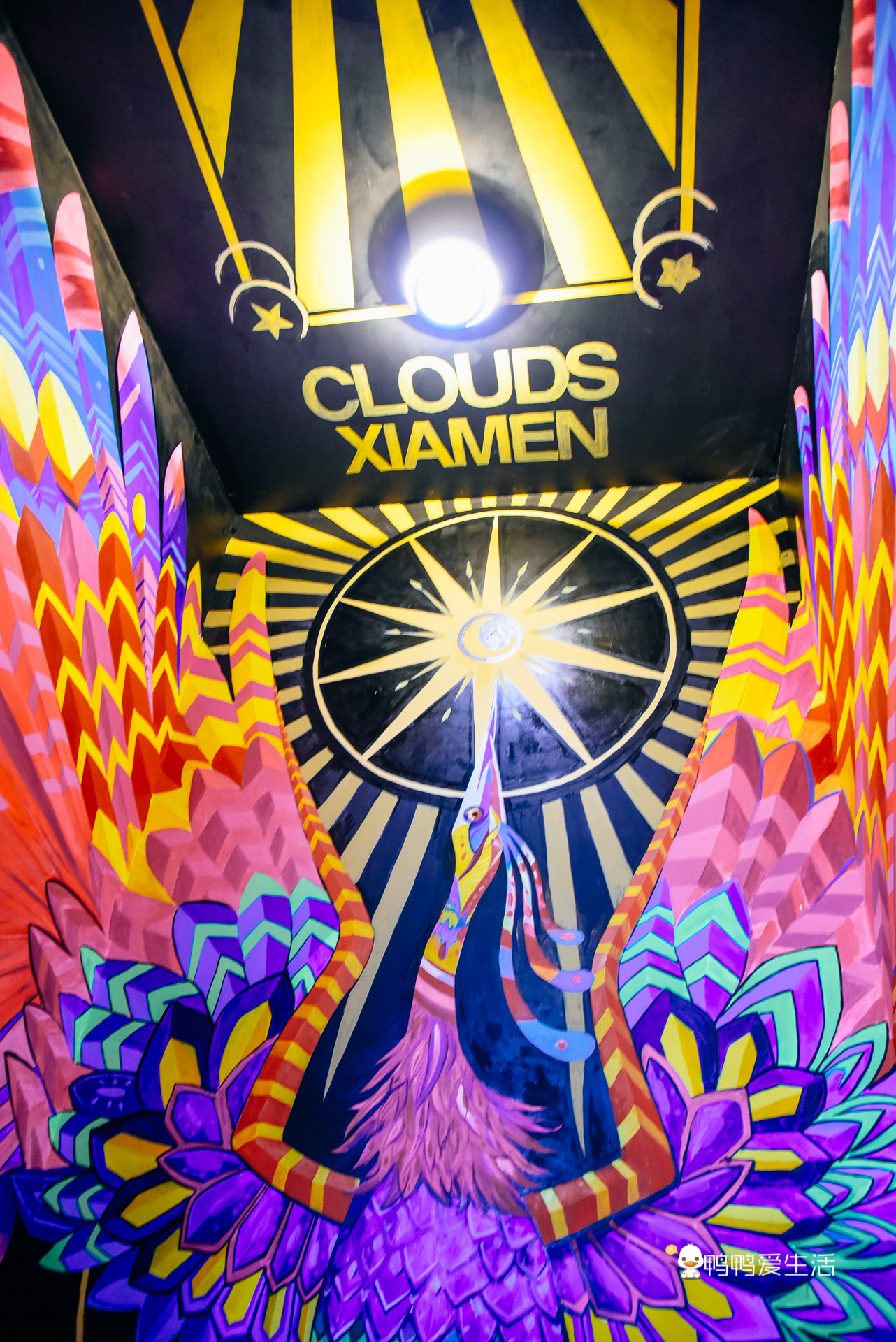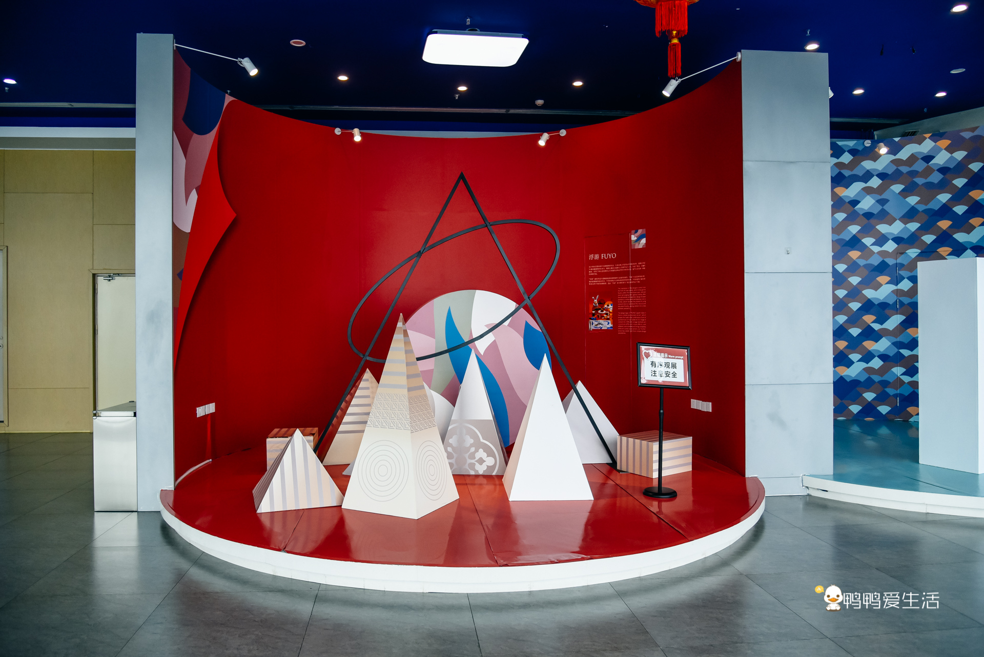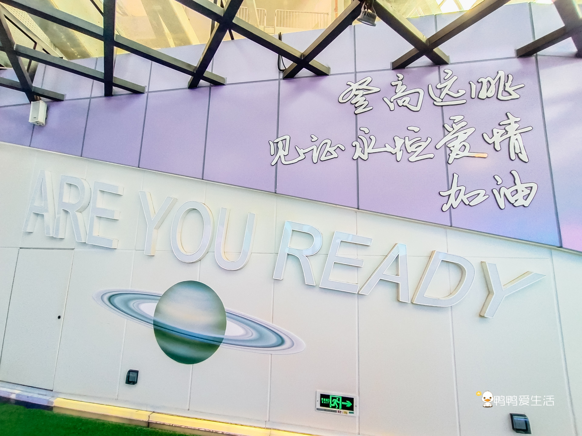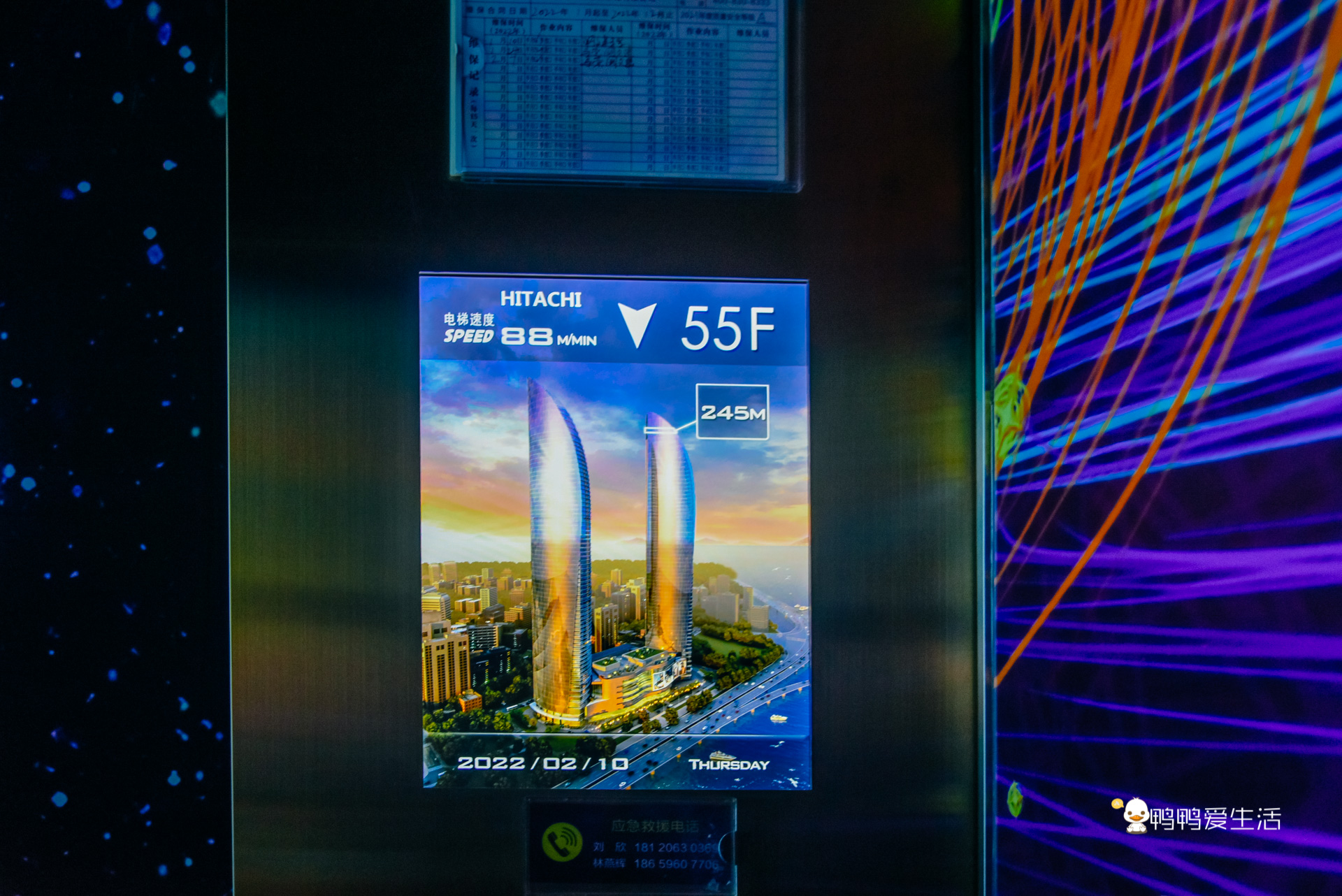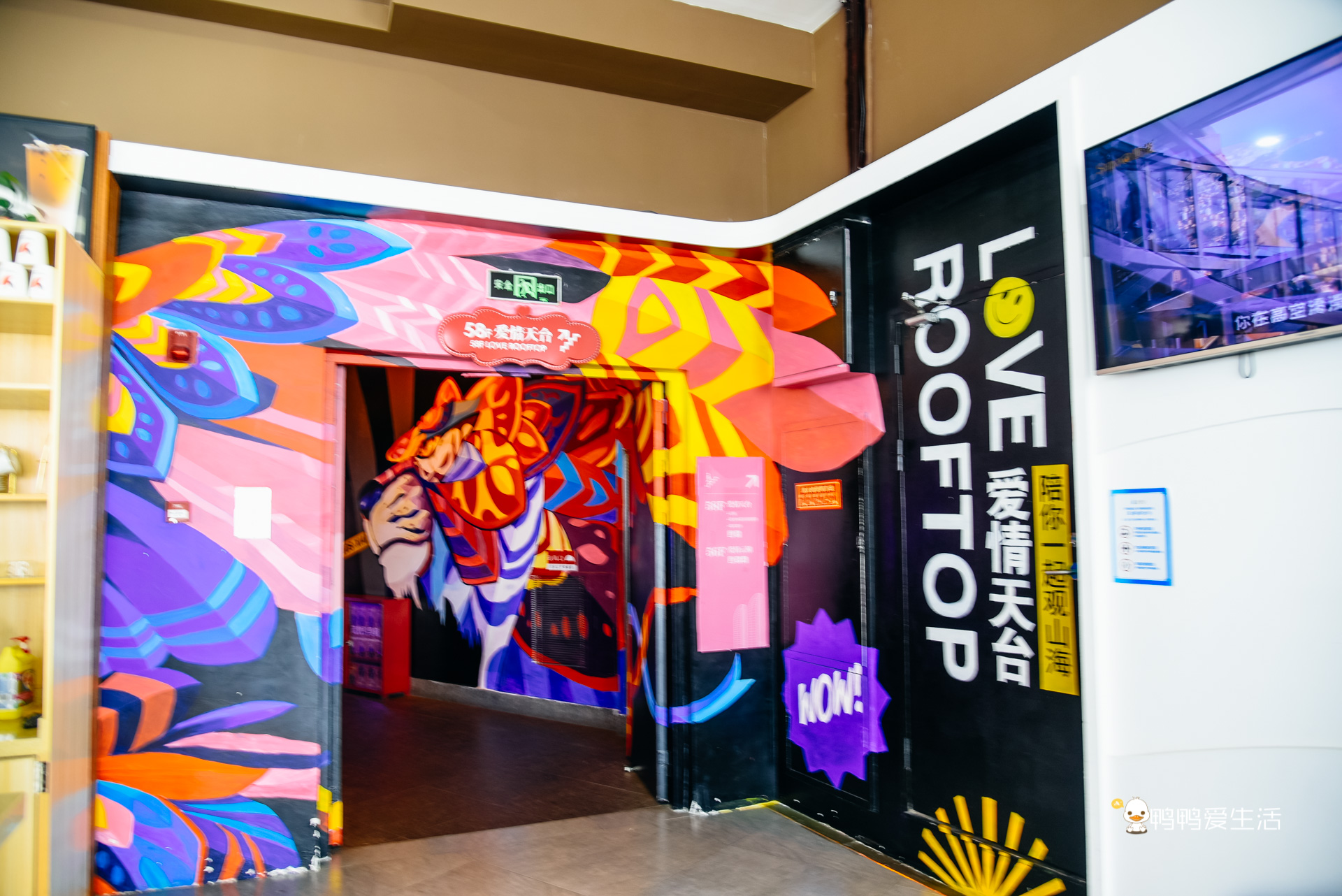 參觀完55樓,從邊上樓梯可以上到56樓的愛情天臺,樓梯兩旁是國潮風格的動畫,酷炫極了。