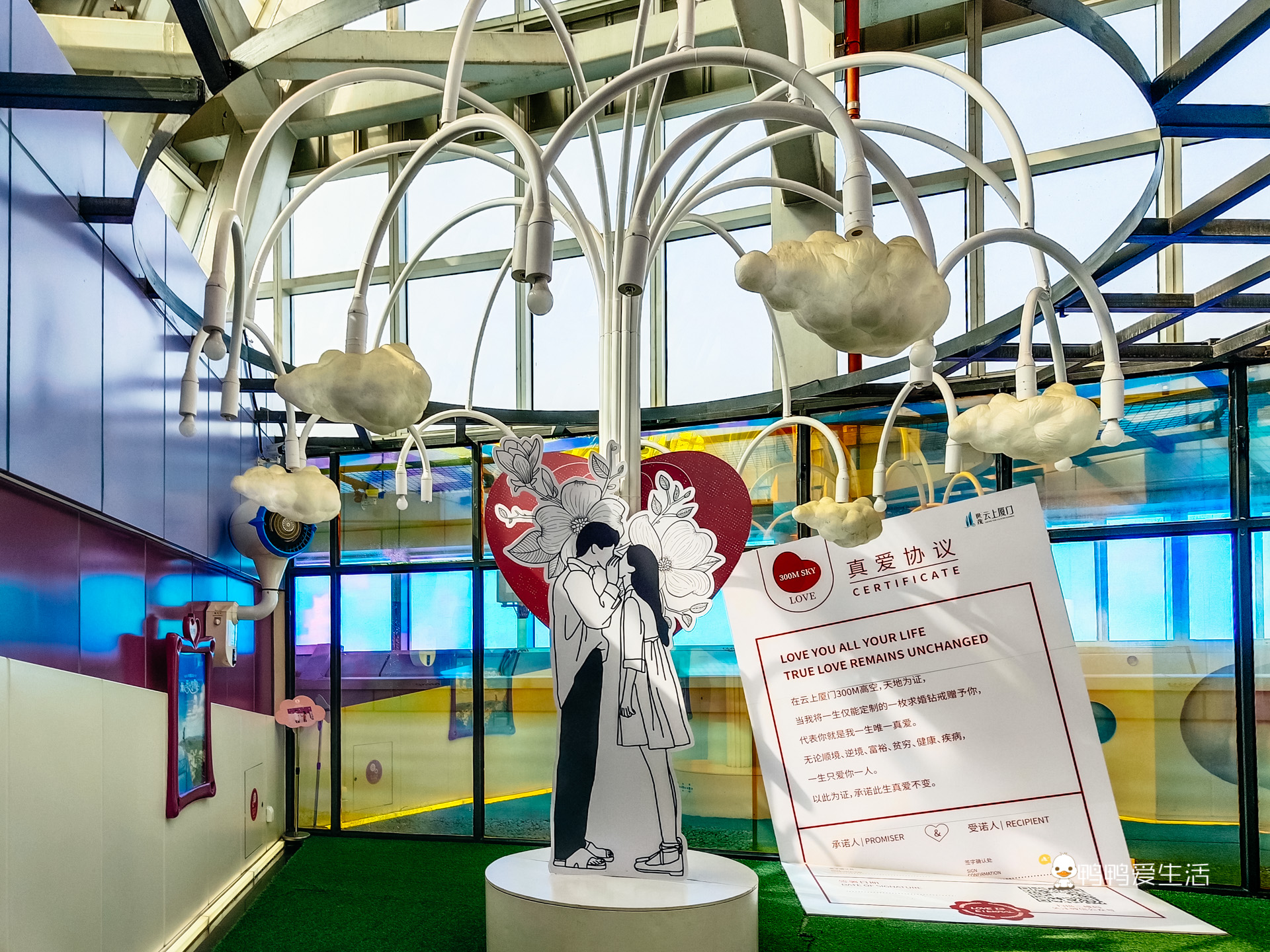 在世茂海峽大廈55層的雲上廈門觀光廳,擁有1300多平米的360度透明觀景平臺,集高空視野、多媒體互動、商業休閒為一體。58層還擁有露天愛情天臺,俯瞰美麗廈門、遠眺鼓浪嶼,成為廈門浪漫的愛情地標。