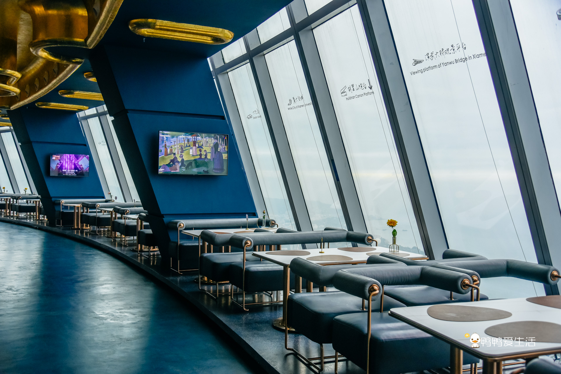 55樓的觀景平臺可以360度旋轉觀賞廈門迷人風情,透過落地窗俯瞰整個城市的婀娜多姿,鼓浪嶼、廈門大學、南普陀、沙坡尾、演武大橋、白城沙灘、胡裡山炮臺等廈門著名景點可一覽眼底,飽覽300米高空的震撼。