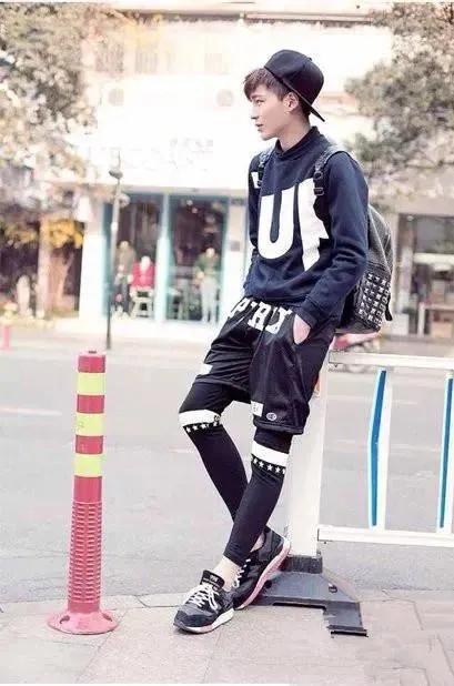 衛衣搭配短褲、塑身運動褲與運動鞋,運動氣息十足。