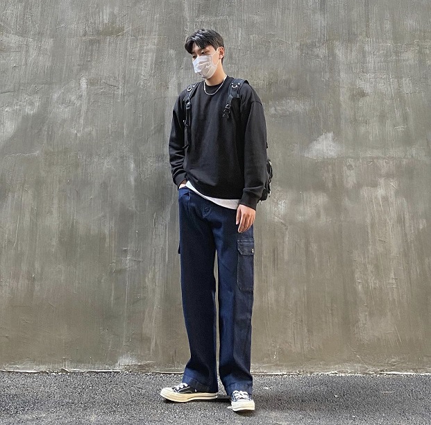 黑色衛衣+工裝牛仔褲