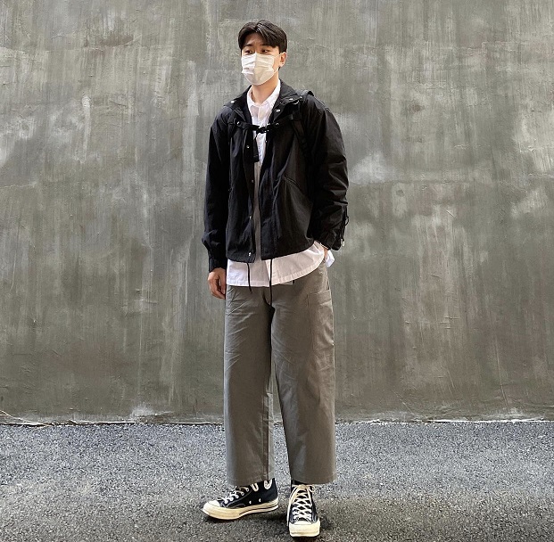 褲裝選擇剛好到達腳踝的長度,突出搭配的利落感,整體乾淨簡約,很適合微胖男孩/小個子選擇。
