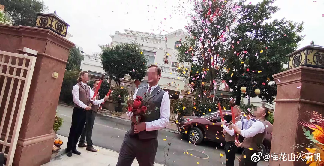 呢場婚禮嘅新郎和接親隊伍都系外國人