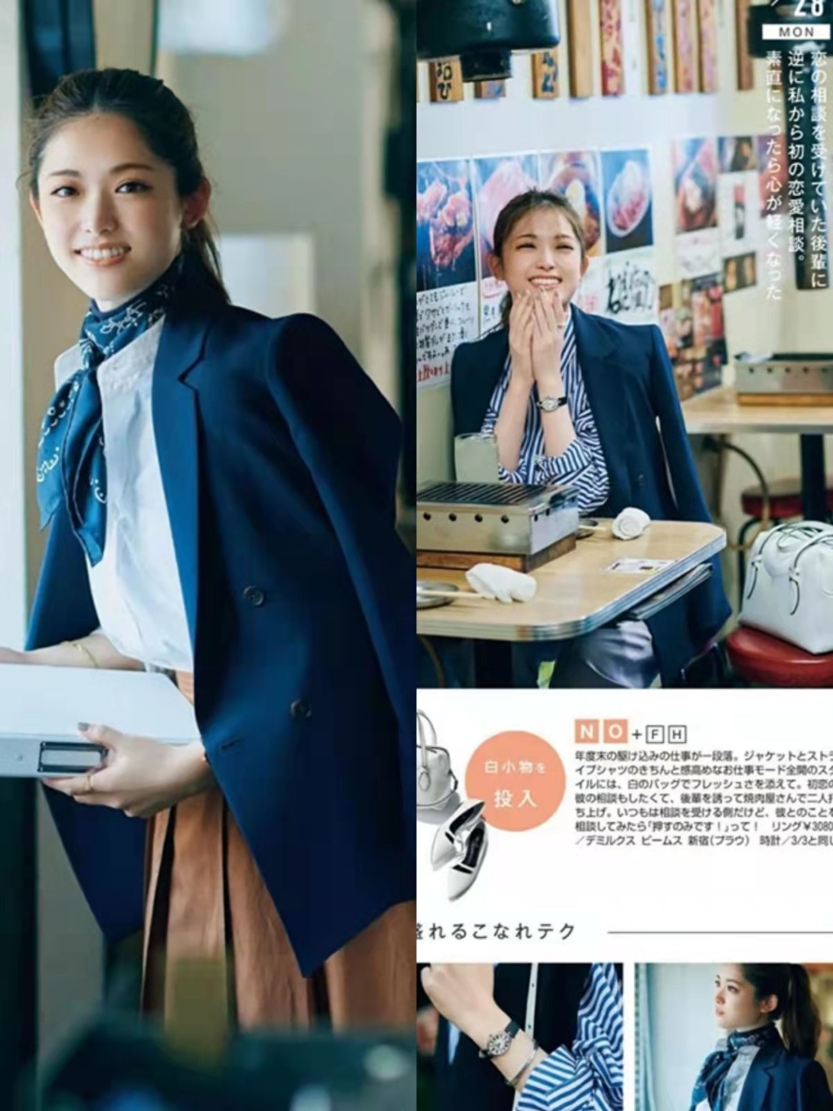 即使是襯衫+基礎款內搭的方式,懂得借助領型對比、色彩對比的女性,也能在這個春季更快一步變美。