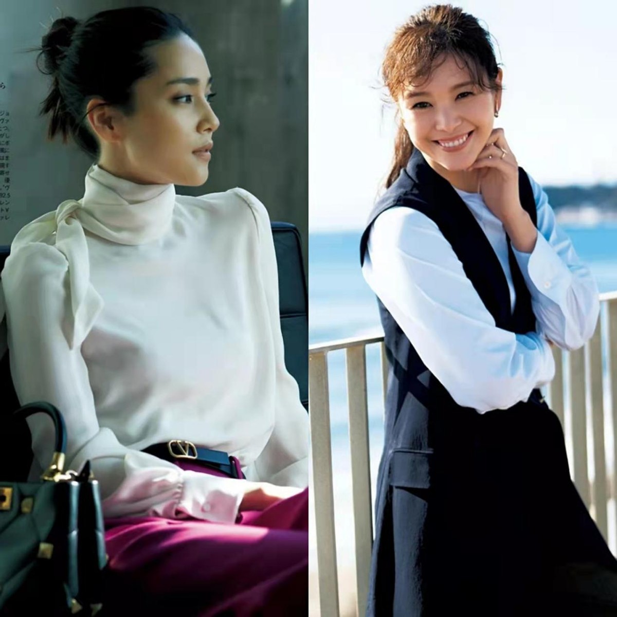 除了重視襯衫款式外,普通人還要關註襯衫領型,像纖細高挑的大女生推薦左邊這類高領襯衫,輕鬆塑造優雅熟齡風。