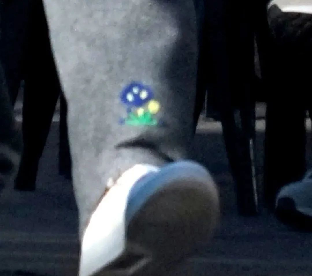 一整個激動的大動作!新鮮的裘花現身倫敦街頭,一身灰色系的英式打扮,但褲子上的小蘑菇瞬間就被吸引眼球,哈哈有可愛到。就問什麼時候能等到咱裘花的新作品?