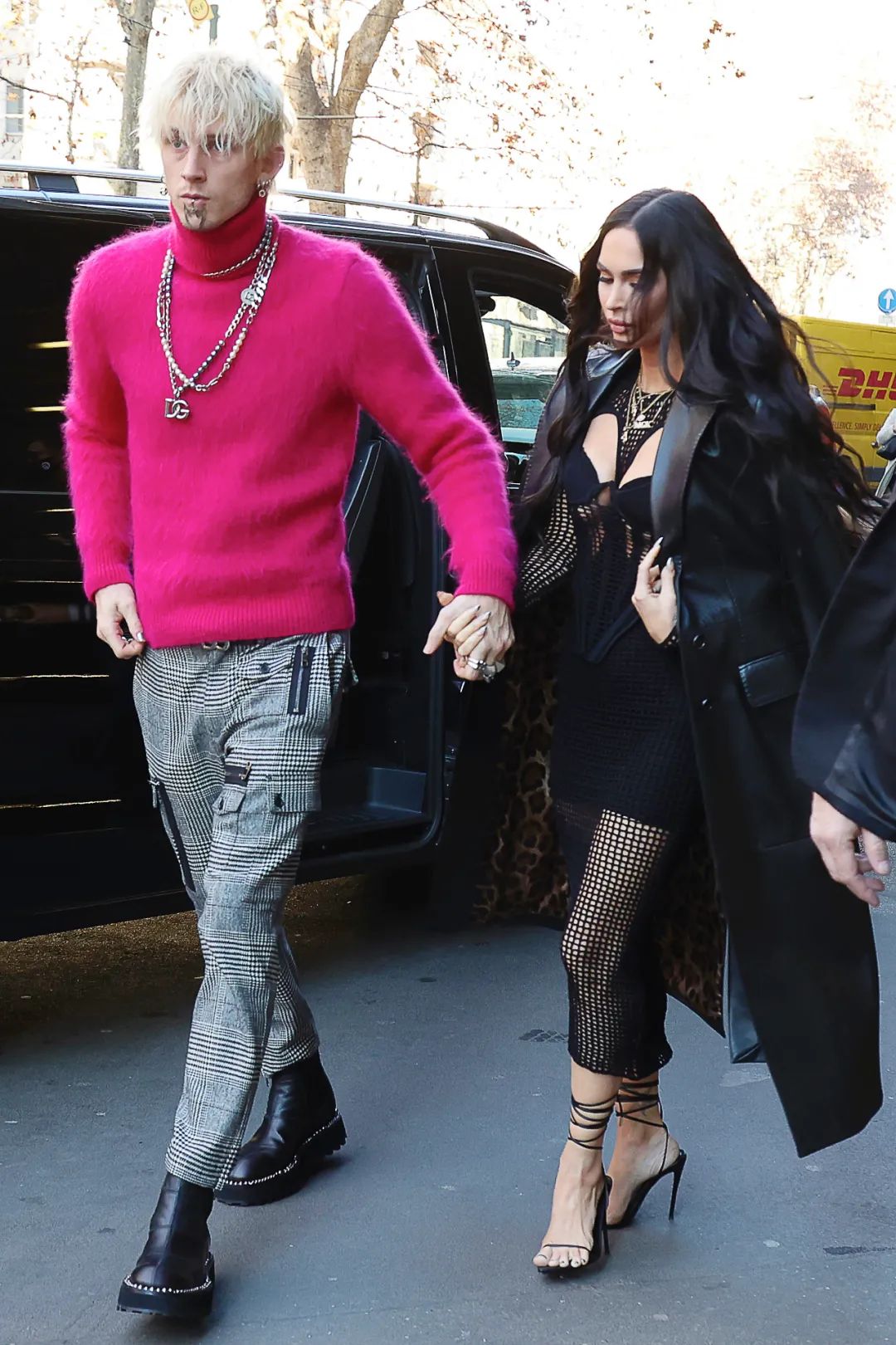 當地時間1月14日,Machine Gun Kelly與未婚妻Megan Fox現身米蘭